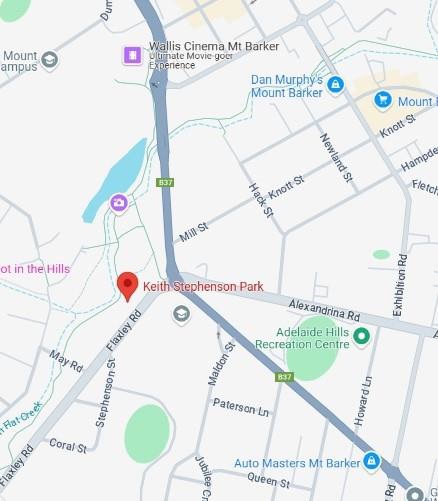 We are meeting at Keith Stephenson Park Mount Barker enter from Flaxley Road.